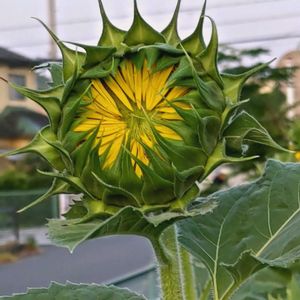おはよう☀ 今朝の散歩道で…… やっと咲きだした 🌻ヒマワリ🌻