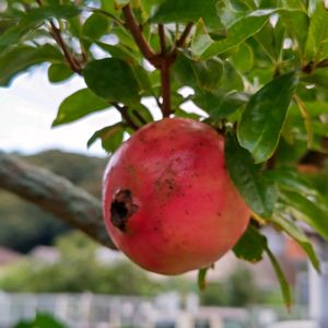 おはよう☁/☀️ 今朝の散歩道 同じ道を昨日も歩いたのに 気が付かなかった😅 ご近所さん家のザクロ