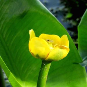 今朝の散歩道。 グリーンプラザの裏の水辺に、西洋コウホネの花が咲いていました。