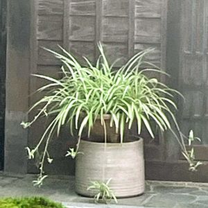 オリヅルラン 通り道のお宅の敷地内の 玄関前に 今朝の散歩道