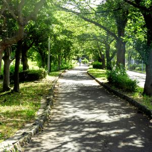 今朝の散歩道。 水元公園遊歩道、 木漏れ日の道✨✨