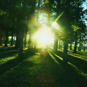 今朝の散歩道。 メタセコイアの森に朝陽が🌄差し込んで、森が光っていました。