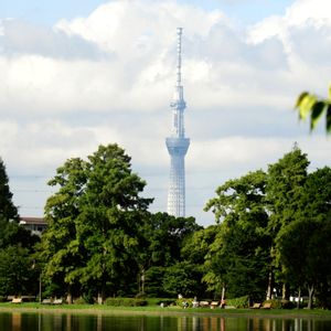 今朝の散歩道。 水元公園から、スカイツリーを撮りました。