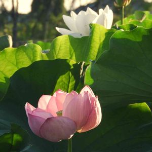 今朝の散歩道。 水元公園、水辺の風景、紅白の蓮の花