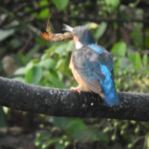 今朝の散歩道。 かわせみちゃんが、大好物のザリガニを捕まえました。