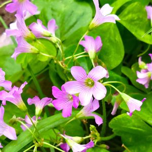 ムラサキカタバミ(紫片喰) 6月7日撮影 ムラサキカタバミの花言葉は「輝く心」と「喜び」です。 「輝く心」という花言葉は、ムラサキカタバミが昔、仏具や鏡を磨くのに使われていたことに由来します。また、「喜び」という花言葉は、スペインやフランスで「ハレルヤ」と呼ばれ、春分の頃に咲くことから、復活祭の喜びを連想させることに由来すると言われています。 ムラサキカタバミは、観賞用として江戸時代に渡来しましたが、現在では要注意外来生物に指定されています。しかし、その花言葉から、縁起の良い植物として、家紋に使われたり、世界中で親しまれています。