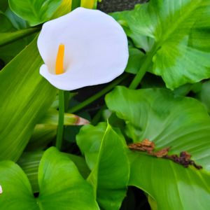 カラー 6月17日、撮影 カラーの花言葉は「華麗なる美」「乙女のしとやかさ」「清浄」です。 詳細: 華麗なる美: カラーの名前の由来であるギリシャ語の「カロス(究極の美)」からきています. 乙女のしとやかさ: ギリシャ神話に登場する女神ヘラが、子供に母乳を与えていた時に零れ落ちた場所にカラーが咲いたという伝説に由来すると言われています. 清浄: 白いカラーの花姿が、ウエディングドレスを連想させることから、清らかで純粋なイメージを抱かせるためにつけられました.