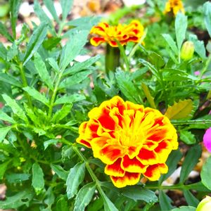 マリーゴールド 6月17日、撮影 マリーゴールドの花言葉は、「悲しみ」「絶望」「嫉妬」といったネガティブな意味と、「勇者」「変わらぬ愛」「健康」といったポジティブな意味の両方を持っています。 ネガティブな意味の由来: 「悲しみ」「絶望」: 黄色いマリーゴールドは、西洋では不吉な色とされ、悲しみや絶望を連想させることがあります。また、古代メキシコでは、マリーゴールドは死者を悼む花として使われ、悲しみや思い出と深く結びついています。 「嫉妬」: マリーゴールドの鮮やかな色彩が人々の目を引くことから、嫉妬を連想させるという説があります。 ポジティブな意味の由来: 「勇者」: ギリシャ神話の太陽神アポロンにちなんで名付けられたとされ、アポロンの力強さや勇気を象徴しています。 「変わらぬ愛」: マリーゴールドが聖母マリアの祝日にいつも咲いていることから、聖母マリアへの変わらぬ愛を象徴しているという説があります。また、ギリシャ神話では、アポロンに恋をした少女カルタが、毎日野原で待ち続け、魂だけの存在になってもアポロンの元へ旅立ったという伝説から、変わらぬ愛を連想させるとも言われています。 「健康」: マリーゴールドは、病害虫に強く、他の植物の生育を助けるコンパニオンプランツとして知られており、その生命力から健康を象徴するとも言われています。 その他: マリーゴールドは、色によっても花言葉が異なります。例えば、オレンジ色のマリーゴールドは「予言」、黄色のマリーゴールドは「健康」を意味します. マリーゴールドを贈る際には、相手に伝えたいメッセージに合わせて、花言葉や色を選ぶと良いでしょう.