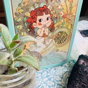 ペコちゃん祭りお邪魔します😍✨ 先日静岡県の美術館で手に入れたカンカン💕 ペコちゃんとミュシャのコラボです❤️ 友達にもらったウサギのミミと私の作ったレースのマスクと一緒に💖 2020.9.26🌸