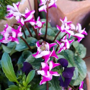 実生のミニシクラメンちゃん。もう一つの方も花が咲きました(手前左)🌸こっちの方がちょっとスリムな花。 こちらも少し香りがするけど後ろのオリガミが香り強めで全てが霞む笑 と言うかオリガミの花と葉のバランス相変わらずおかしい😂 実生は二株しか無いから長生きして欲しいなぁ