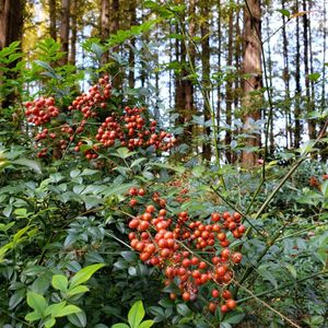 紅葉⑤ 【南天(ナンテン)】 「南天=難点→難を転じて福となす」 よく、難を免れるように、お正月飾りに使われていますよね😌 南天(なんてん)は濃い緑の葉に赤い実をつける常緑低木。冬でも濃い緑が茂っている様子や、赤い実をつける特徴から縁起物として好まれ古くから、魔除け、厄除け、無病息災を願い多くの家庭で栽培されて来ました。 みどりの葉に赤い実で、おいしそうにもみえますが、毒性があるようなので注意です⚠