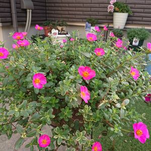 おはようございます‼️ ゲブラナガトヨさんのポーチュラカ マジカルキューティー🎵 昨日の大雨を食らったら元気になりました😲‼️ 今までより枝が立ってます😆 花数も過去最多‼️ 葉っぱにピンクの斑が入るけど、画像だとピンクの斑がほぼありません😁 水を控えめにするとピンクが出やすいそうですが、水をあげると元気になる。 うーん、難しい~😹