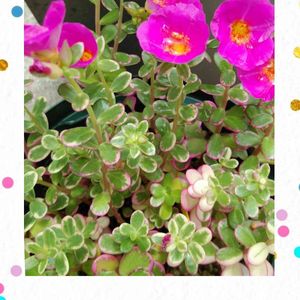もう1枚 今日のお花 ポーチュラカ マジカルキューティーさん🌸 ピンクの斑入りの葉っぱに これまた鮮やかなピンクのお花💕 ポーチュラカさん 大好きなのであります💖💖💖