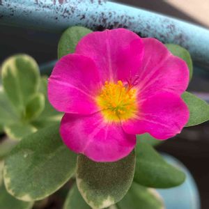 こんにちは。 朝から雨が降って少し涼しいな~って思ったけど、やはりクーラー入れてしまいました。😅 今日のお花 ポーチュラカ🌼マジカルキューティーです。 最初の頃より斑入り葉っぱ🍃がミドリンになってきたかな😅