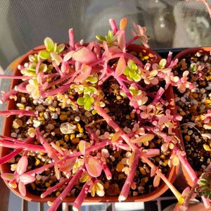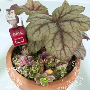 先日、気になってた、ピンクの葉っぱのポーチュラカ、マジカルキューティーに出会ったので購入😁 植え付けました💕短めだったケド、少し切って、挿し挿し(^ー^)葉も置いておきます❣