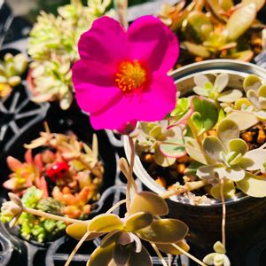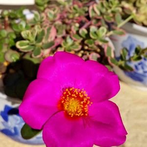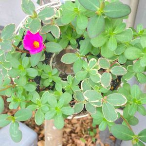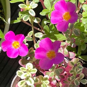 ポーチュラカ マジカルキューティー💗 鮮やかなピンクのお花が咲きました💞斑入のピンクの葉っぱもすてきです😍 いただきものです😆ありがとうございます💗