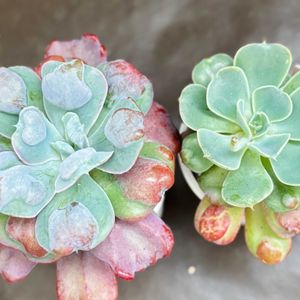 夏顔の2つ ❁⃘ハートディライト(向かって左) そのままの形でミドリンになりました ❁⃘レインドロップ(向かって右) コブのあったレインドロップ🍬 (;ᵒ ᗜ ᵒ)アレ…お水の関係かなぁ? 気がついたら夏顔🌱 下葉には、わずかにコブが残っていますが 上の葉にはコブがなくなってしまいました💧 皆さんもですか? 今日もお疲れ様でした ☕ᐝ