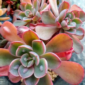🏷️2のつく日は斑入りの日 ポカポカ陽気☀️紅葉も日に日に冷めていきますね🥲ちょっと淋しいけど成長期✨🌿 1.クラッスラ朝霞錦 2.レインドロップ(コブはまだ赤い♡) 🏷️斑入り見つけ隊♪