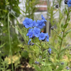 🌿💙パラカリウム💙🌿 (シノグロッサム) 五月にコバルトブルーの輝きの花が咲いて 種ができ ……枯れて… エッ❗️ここに? いつのまにか こんなに大きくなって 😲咲いてた‼️ 💙初夏に咲く花と思ってました こぼれ種で秋にも咲いてくれたのね 🤗🎶⤴️