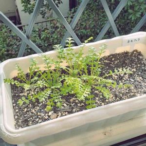 【ネモフィラ⑥】 10月と比べて、とっても大きくなりました🌿🌿 葉を伸ばせるスペースが無かったためか、1株は枯れてしまいましたが、他は元気一杯のようです🌿💫 謎の芽を別の鉢に移して空いたスペースに、ダメもとではありますが、1ヶ所、種を蒔いておきました。 上手くいけば、プランターいっぱいに、真っ青なネモフィラが咲く……ハズ💠