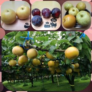 お隣の梨園🍏 今が最盛期🎶 ↖豊水 ↑プラム ↗秋麗と幸水 ↓秋月 傷梨🍏もらって毎日食べてます😋