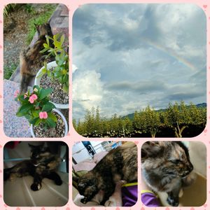 今日は世界猫の日🙀 なんですかぁ😆 ↗さっき苦行に庭にでたら虹🌈がでてました🤗 山は☔降ったのね🤣 梨もいっぱい🤤 昨日、今日撮れたてのちび😽ちゃん👋