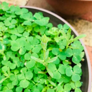 3月に種まきしたワイルドフラワー 蕾のようなものが₍˄·͈༝·͈˄₎◞ ̑̑ෆ⃛ クリムゾンクローバー?もう少し間引けばよかった…