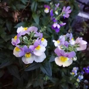 切り戻してやっと咲き始めました。きれいな色。前より紫が薄くなったような…。 肥料不足は否めない秋のネメシアちゃんでした。たくさん咲いてね。🙏🙏🙏