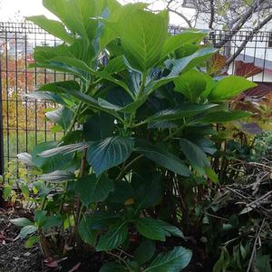 緑鮮やかなアジサイちゃん。これから、縛られます。 悪いことをしたわけじゃありません。半年間の冬に備えて、暖かいおくるみを着せてあげます。🍵🍵🍵