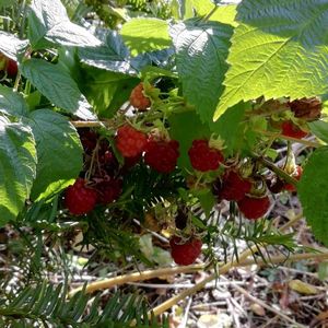 見つけてビックリ😍⤴️⤴️またまた ちょうど食べ頃のラズベリーがたわわに実っていました。時期が過ぎてしまったのを除き、20粒ほど収穫😊😊😊娘が帰って来るのが楽しみです。 昨日初雪降ったのに。😅😅😅