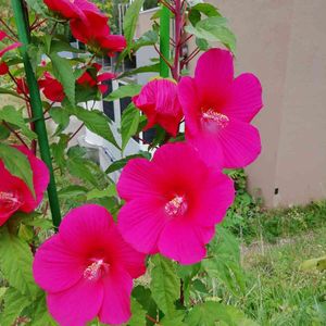 新記録!3輪同時!窓にくっつく様に咲いていました。 感激🌺🌺🌺