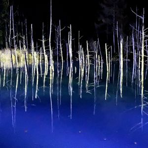 昨日仕事が終わってからライトアップされている 美瑛の青い池と白髭の滝を観に行って来ました😃
