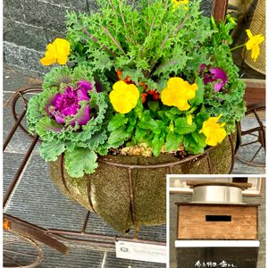 有名な釜飯屋さん 店の前の葉牡丹の寄せ植えが可愛い😍