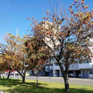 やっと撮れました! 札幌市豊平区名物、中央分離帯のリンゴの木です。真っ赤に熟してきました。