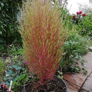 コキアが色付いてきました。(昨日撮影) びっくり👀しました。大きくしようと鉢を変えてみたのですが、成長が止まるのかしら? 明日から10月。早いですね。 台風が大変そうです。影響のある地域の方、気を付けて下さいね✨