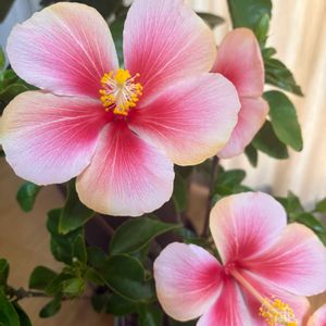 🌿今朝のハイビスカス🌺 部屋に入れたら 毎日沢山咲いてます🎶 剪定する予定だったけど、 まだまだ蕾も沢山あるので このまま部屋で楽しみます❣️ 🌺🌺 真夏の色に比べると 優しい色に変わって来ました! これはこれでいい感じです! 三連休の間に待機苗🌱🌱の植え付けして冬花壇を綺麗にしようと思います❣️ 素敵な金額日に〰️〰️❤️❤️❤️