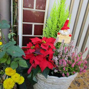 夫の誕生日プレゼントに贈られて来たお花を植え替えしました。クリスマスバージョン🎄