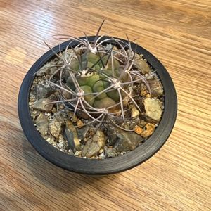 ギムノカリキウム天賜玉。 サボテン手始めはミーハーで強刺ものがいい!とフェロシオールを求めたが生憎出会えずこちらに決定。自分好みに仕立てればカッコいい!