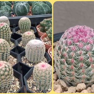 「染谷サボテン園」 感動爆買 その6(ラストです) テフロカクタス ゲオメトリクス コロっとしたこの姿❤️ゲオメさん やっと会えました ( ゚∀゚)人(゚∀゚ ) 日光に良く当たると赤からピンク色に変化し そして球体を重ね雪だるま⛄の様に。。フフフッ🤗 ちょっとお時間がかかりますが とても楽しみです💓 しっかり見守り育てるぞ~‼️👊 🔎で良く観ると目立たない棘が下向きに生えています これもまた面白い🤗 H 3.5㎝ w3㎝