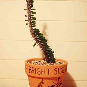 トゲトゲの亜竜木^_^ 普段はモスポットに植えることが多いのですが、 この時は切らしていたので素焼きの鉢にいろいろ落書きを加えてみました!^_^