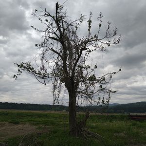 2023/05/06 目的地の駐車場… 見覚えのある桐の木… 無事に冬を越して開花 スタートは降っていたのですが、柏崎に入った頃から止んだみたい? でも1時すぎてるのに暗いからまた降るのだろう…