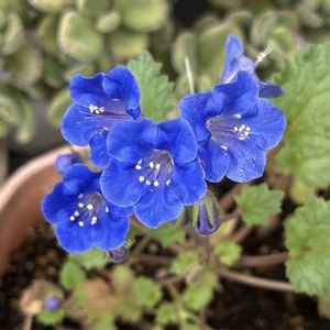 ファセリア ブルーベル💙 ヤッタ━━(ఇ˃́⌔˂̀ಣ)━━ッෆᵎᵎ 今朝咲いていました💙 実はこれはこぼれ種です。 5月に↘︎この芽🌱を見つけて、これは雑草じゃないな、この鉢は確か昨年ブルーベルを育てていた鉢、もしや🤩 調べると🔍AIさんはこぼれ種でも増えると言っていますが、実際に生産されている方は、こぼれ種で増えるのはほぼ不可能だと😨 とりあえず大事に育てていました。株が育つともうブルーベルと確信!蕾が出て、ついに開花です🙌 霜にあたると一発でダメになるそうなので、この子は上手く春に芽吹いてくれたという事ですね♪ すごいラッキーこぼれ種でした💙💙💙
