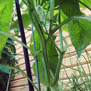 食べた種からのパプリカ 家の前のプランター。やっとこさ花が咲きました😍畑のんは台風の風でアカンくなりました😇 ピーマンはサブさに強い⁉️と聞き、ちっちゃな望み掛けてます‼️ 赤か黄色か😆どっちの苗かもわかりません❗