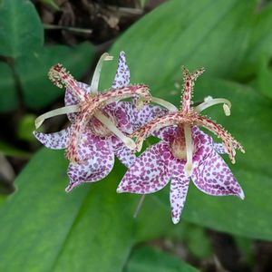 〜今日のお花〜 ヤマホトトギス(山杜鵑) ユリ科ホトトギス属 🏷️山野草大好き 🏷️2021年同期の会NO.9 🏷️2024秋の十草 3枚目はホトトギスでお願いします。 今年は暑かったので ヤマホトトギスの花が 少なかったです でも新しく咲いている 場所見つけましたよ。.:*♡ 実家の山道
