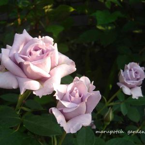 バラ ラブリーブルー Lovely Blue 四季咲き、半直立、数輪の房咲き、ブルーローズの強香♪ 早朝の撮影(*^_^*)