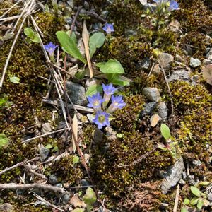 おはようございます🌞 この3連休はいい天気みたいですねえ、皆さん連休疲れ😫に陥ってませんか❓😅 那須近くの幹線でもない田舎の抜け道的な道路もそこかしこで渋滞、だから連休で出るのは嫌だぁ❗️ 昨日ちょっとお出かけしたついでに、人気のない小さな湿地に(湿原というよりほんと湿地)、昭和天皇も訪れられた場所でこういうところお好きらしいなとお人柄を感じさせる小さな鄙びた場所です。 結構面白い山野草が見れるんですが、流石にまだちと早かった。所々に水が溜まってる枯れ葉の中に「ハルリンドウ」がたくさん咲いてました。 フデリンドウと違って湿った場所が好きな花で、一茎に複数の花がつくフデリンドウと異なり茎は根元で分枝、茎先に一輪の花を咲かせます。どちらかと言うとフデリンドウよりヒョロリとした印象が強い花ですね💕😍 基部に大きめの根生葉があるはずですが、枯れ葉に隠れて見えませんでした。