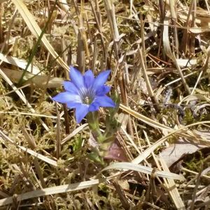 枯れ草の中から鮮やかな青が見えました。 ハルリンドウ、名前のとおりハルですね! 20220327@愛知県豊橋市