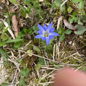 ハルリンドウ 一株だけ咲いているのを見つけました❣️ 今日は、暖かく、春が来た〜。って感じる一日でしたね♪(´ε` )