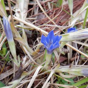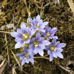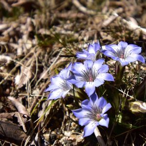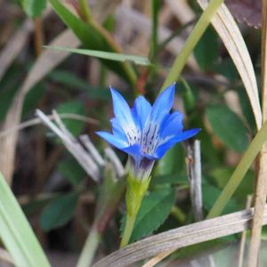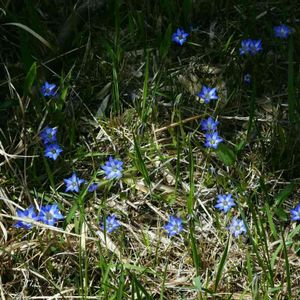 ハルリンドウ リンドウ科リンドウ属 湿地性植物ですが、しっかりと水の中から生えるのではなく、湿り気がほんの少しある場所に集まって咲いてました。