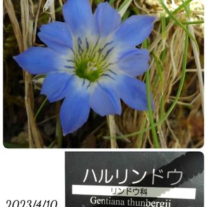 ハルリンドウ リンドウ科の多年草 フデリンドウとよく似ている花です。